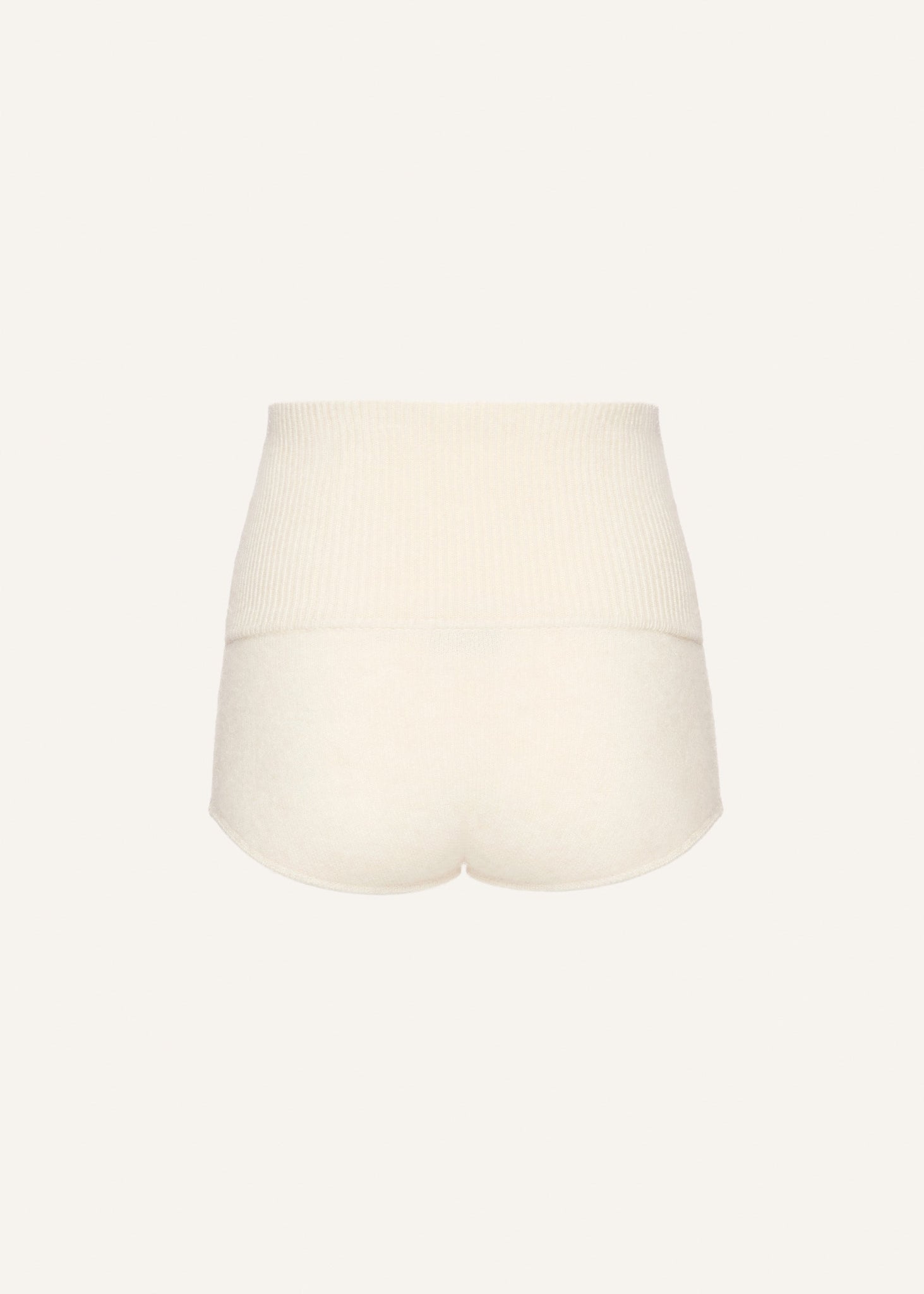These ultra-soft shorts are crafted from a luxurious mohair-blend knit, offering a cozy texture with refined structure. Featuring a flattering high-rise ribbed waistband and a seamless silhouette, they come in a rich cream hue that adds warmth and sophistication. Pair with a matching cardigan.