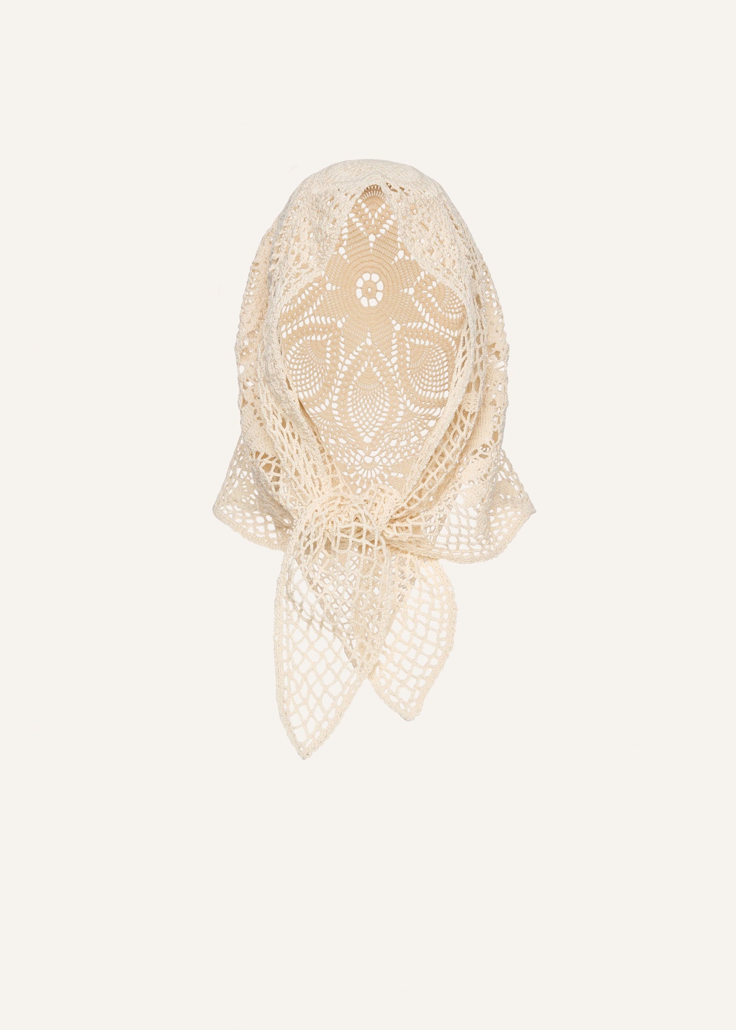 This beautiful crochet scarf in cream showcases intricate craftsmanship with an openwork floral pattern. Its triangular shape and lightweight design make it an accessory that can be worn as a headscarf, around the neck, or draped elegantly. Perfect for adding a soft touch to your outfit.