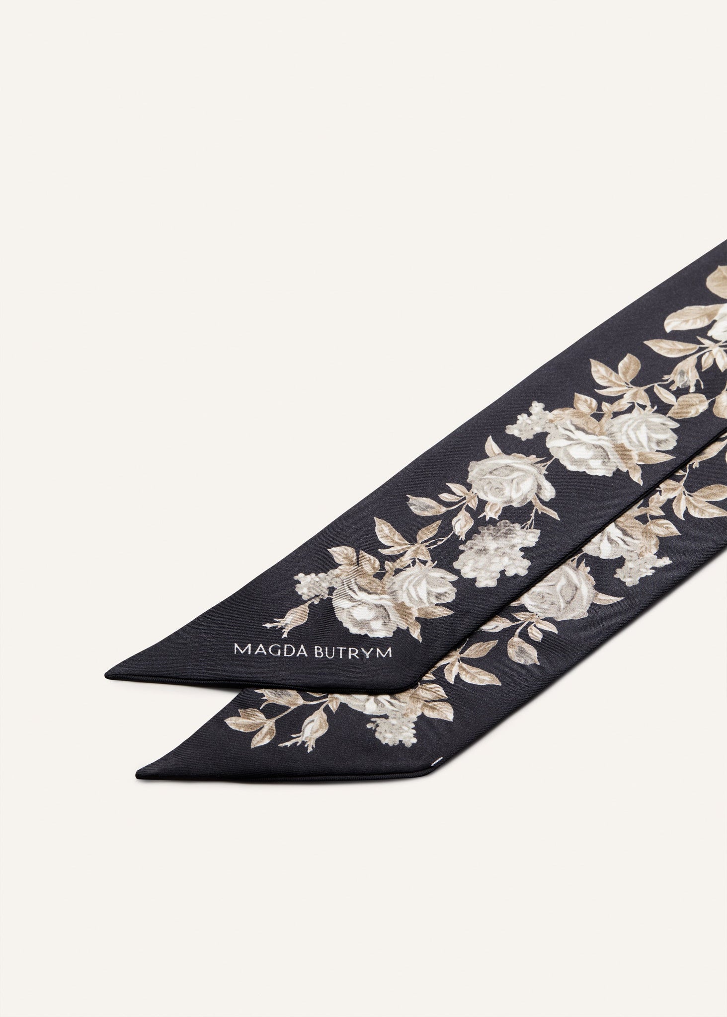 A refined silk twilly featuring an all-over floral print. Perfect for versatile styling, it can be worn around the neck, tied in the hair, or used as a bag accessory to elevate any outfit.\r
