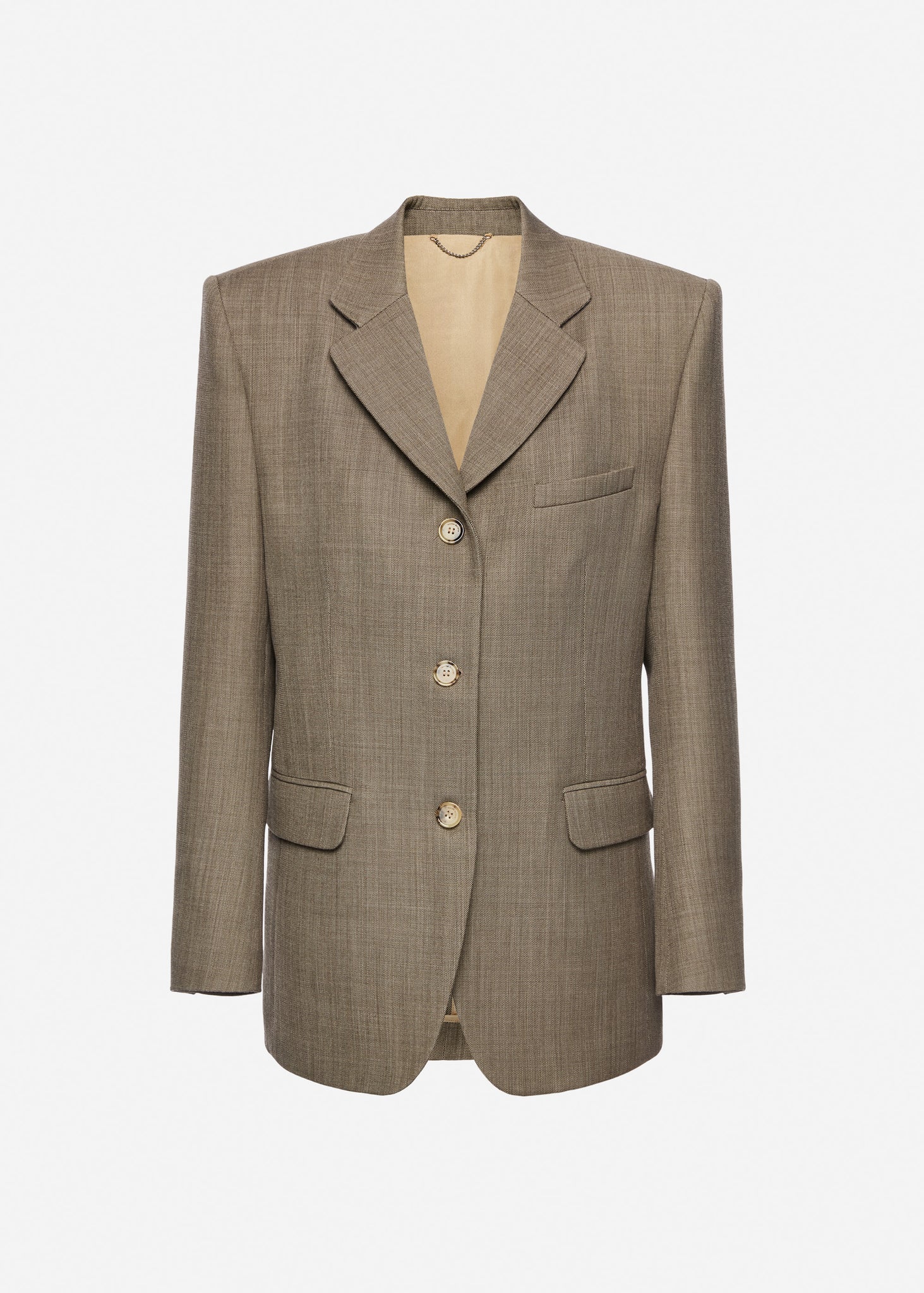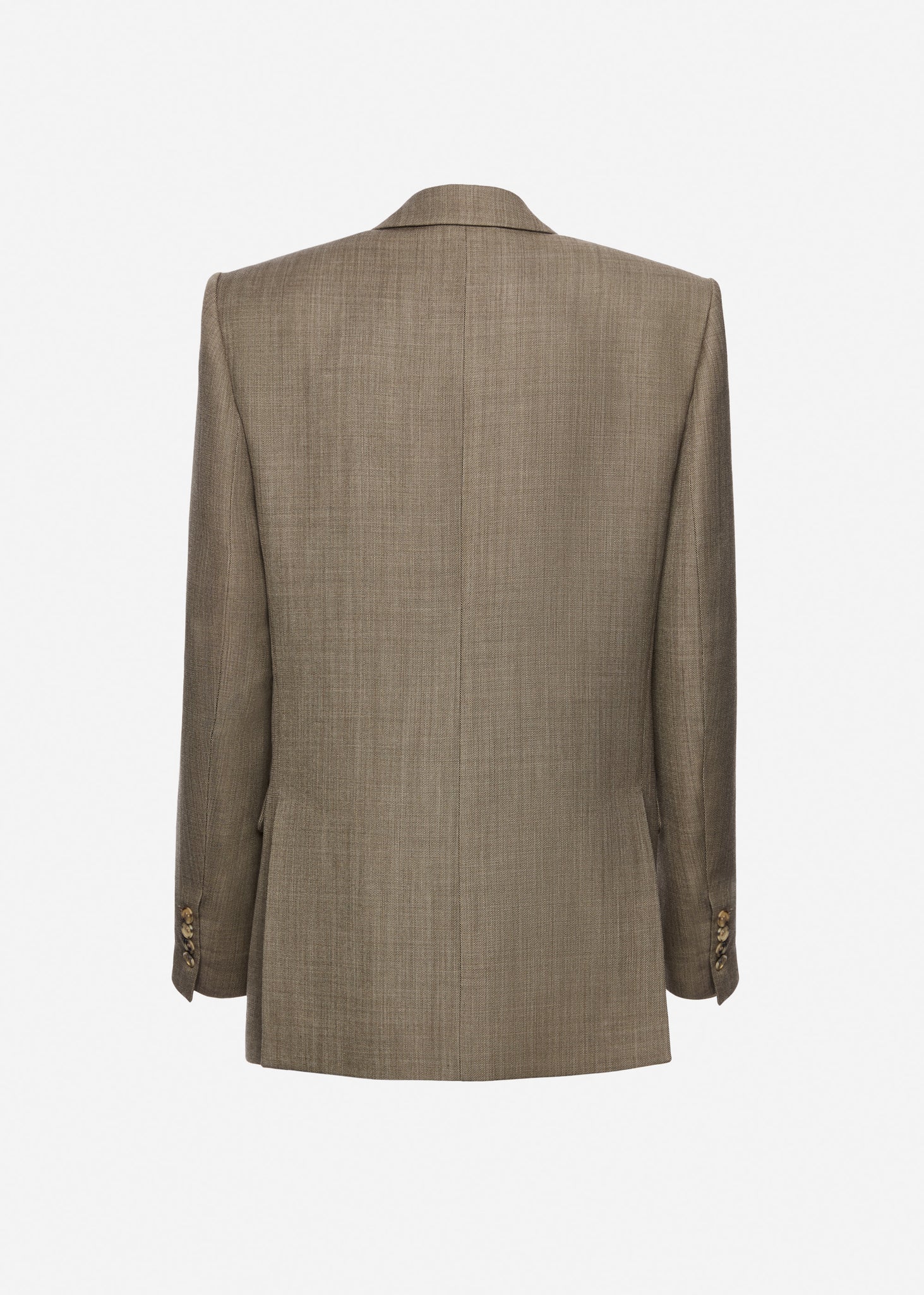 A timeless single-breasted blazer crafted from a refined blend of wool and mohair. Designed with a straight silhouette and softly rounded open lapels, it features a three-button front closure, welt chest pocket, and flap pockets at the waist. The back has double vents for ease of movement.