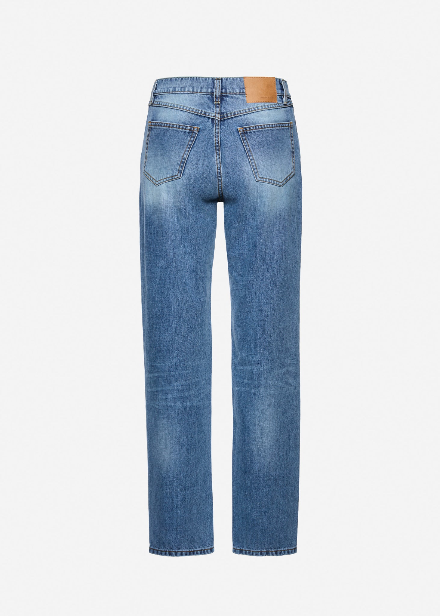 Classic denim pants made from stiff cotton, with a straight leg fit.