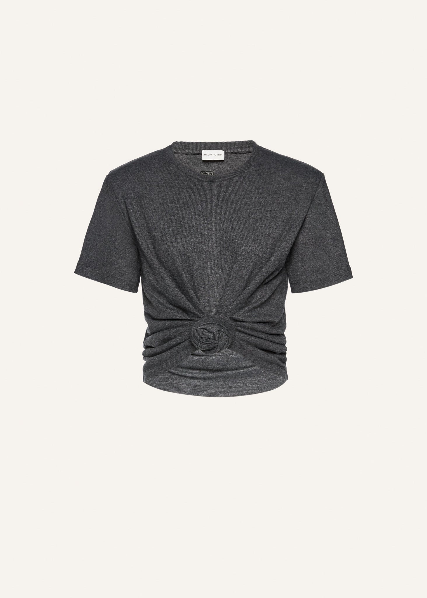 Magda's classic ribbed t-shirt with a knotted detail at the front and detachable shoulder pads.