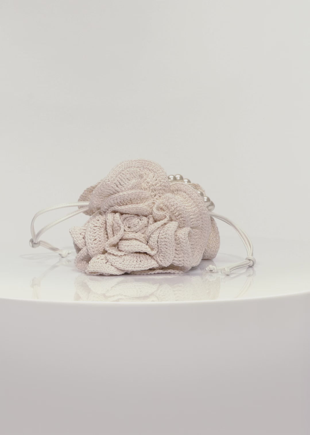 PF23 MAGDA BAG CREAM SATIN CROCHET PEARL