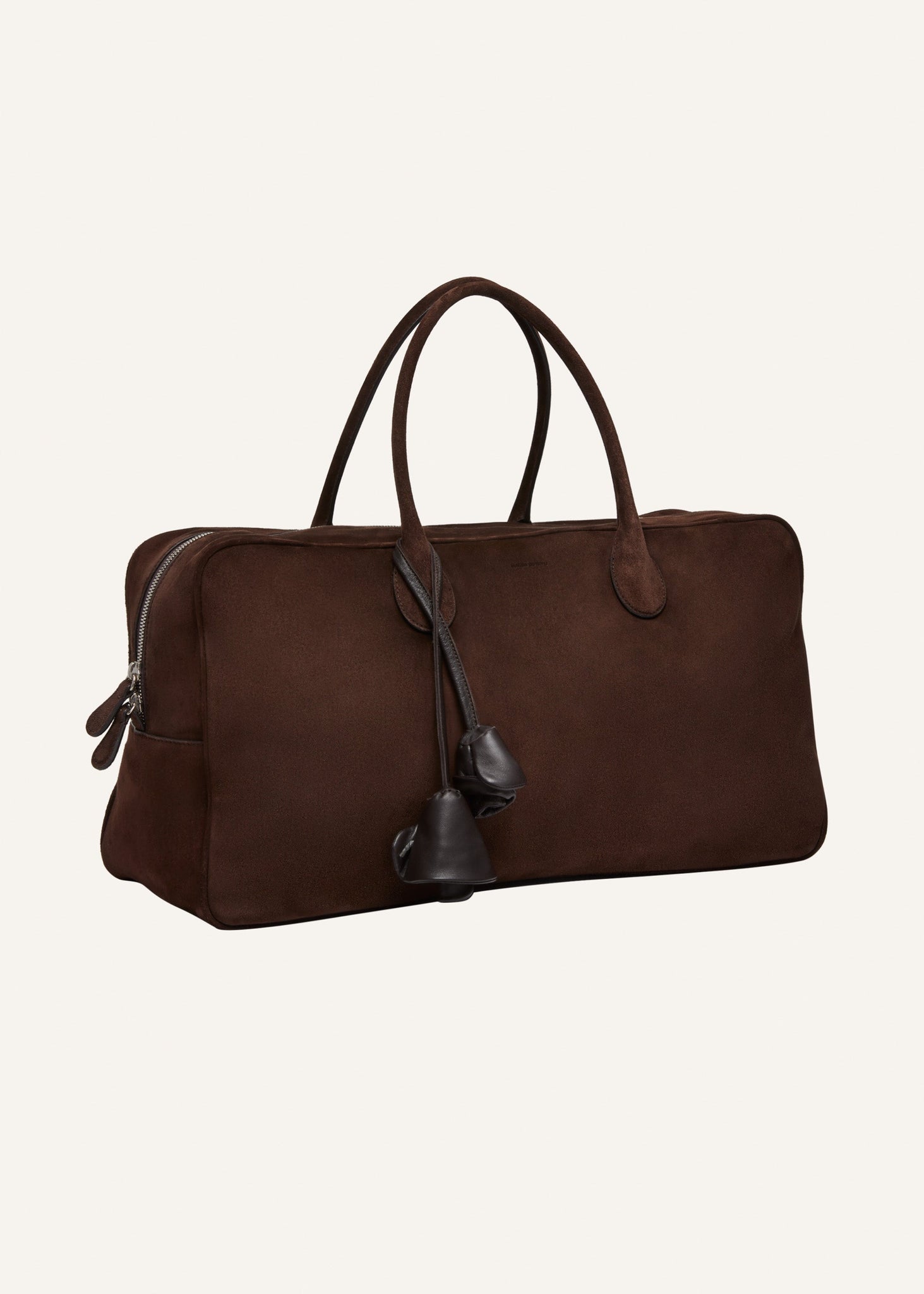 The iconic Brigitte bag in its large size, offering a stylish and practical day bag with a minimal and classic look. The lining is crafted from canvas for an ultra chic finish. Silver feet at the base protect against wear and tear. The bag is made recognizably Magda with its detachable flower charm at handle.