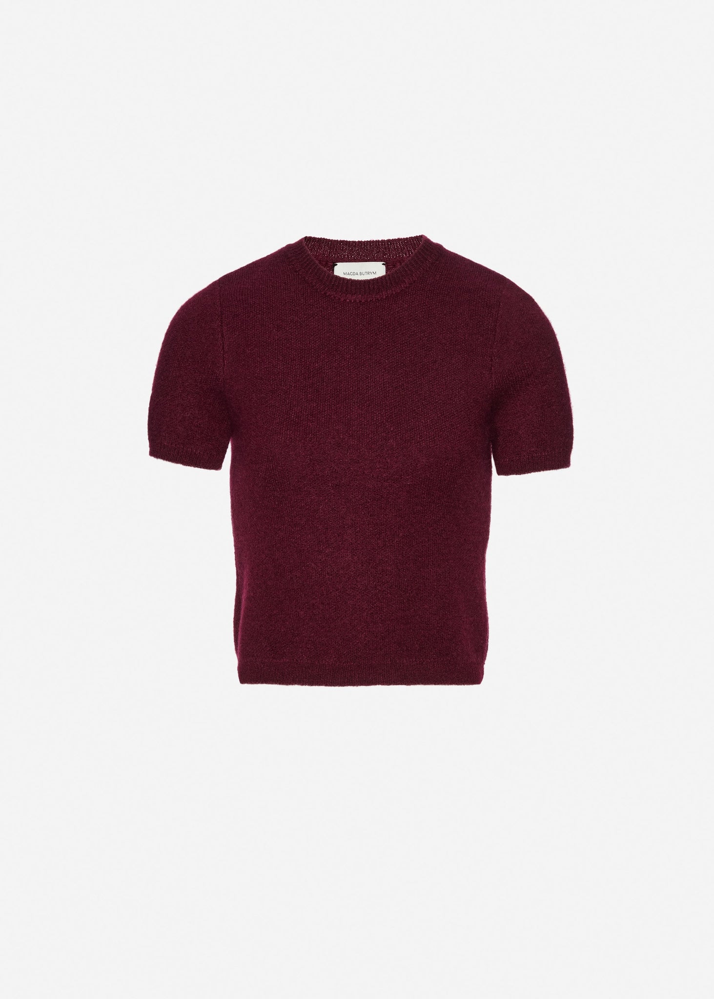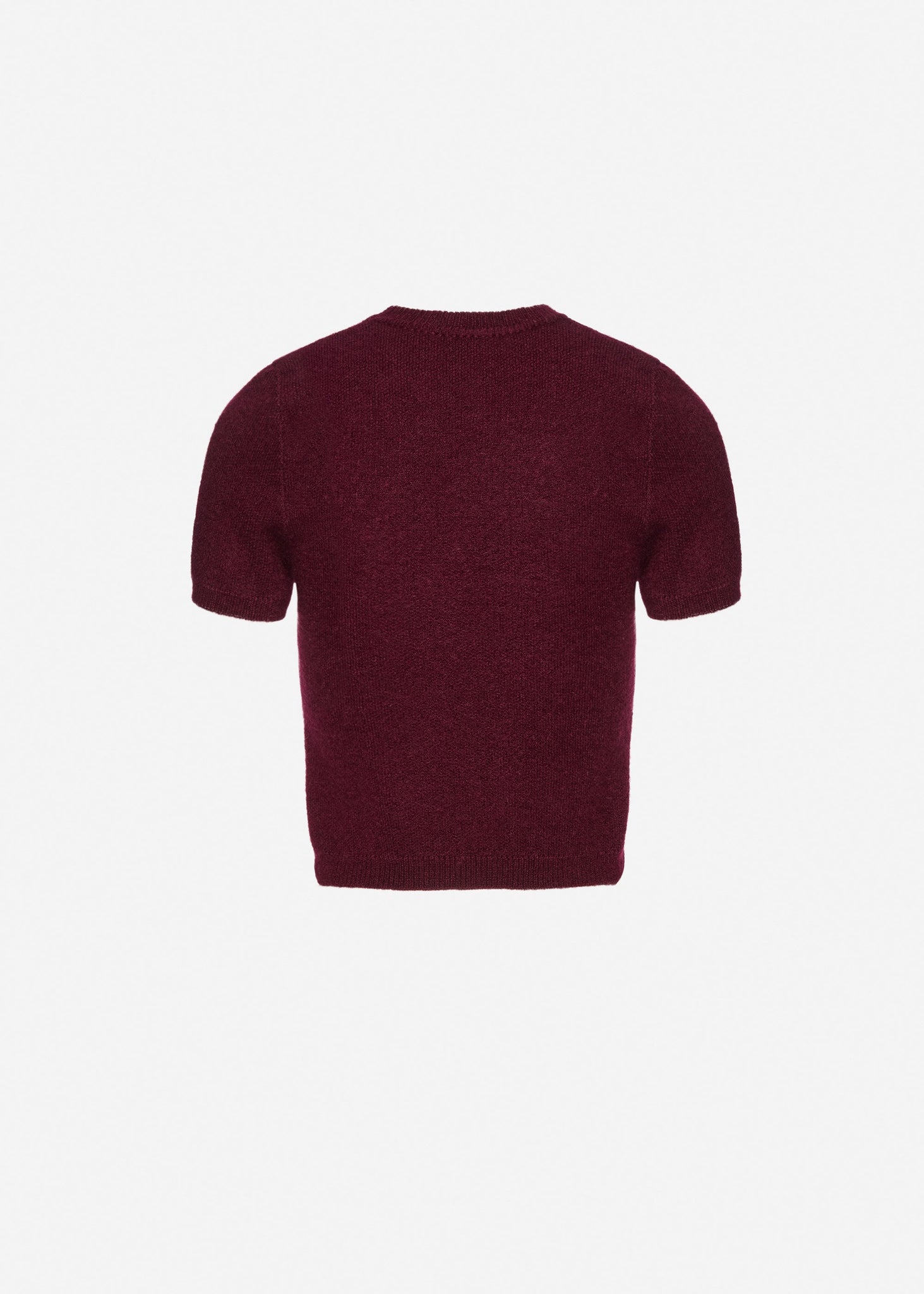 Short-sleeve mohair knit top in burgundy
