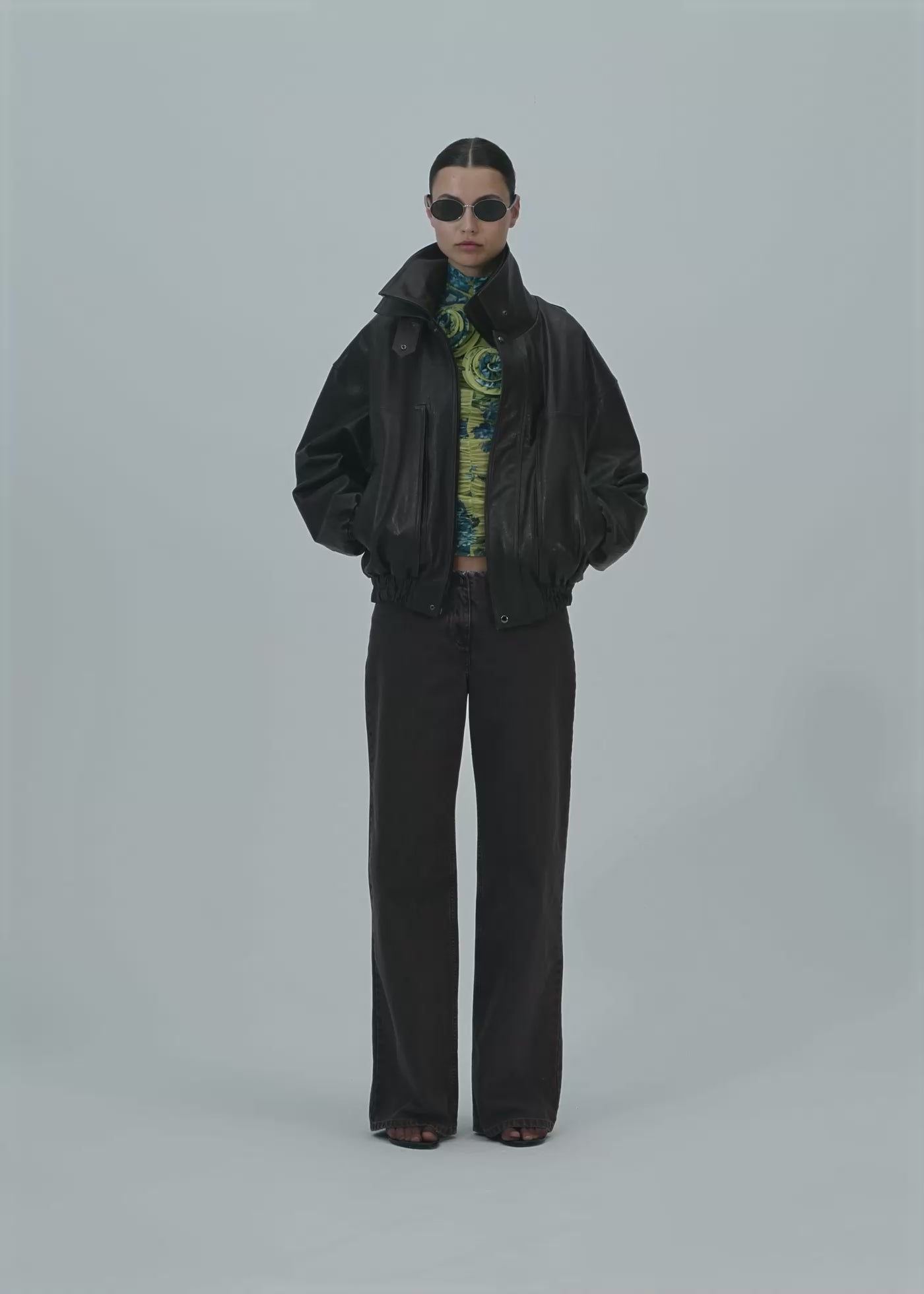 This fitted cupro high-neck top has long sleeves and front ruching with rose appliqué detailing, available in seasonal floral print.