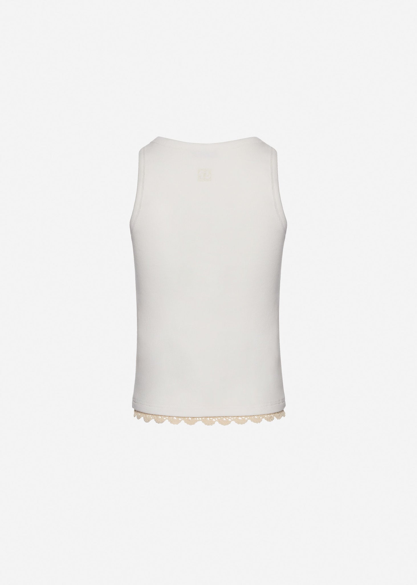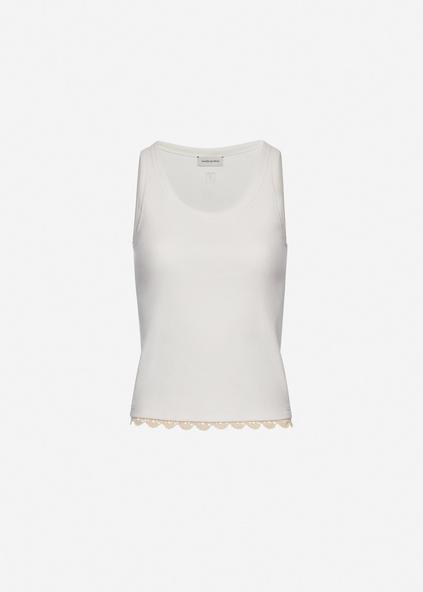 A simple cotton tank top featuring Magda Butrym's signature handmade lace crochet detailing at the hem.