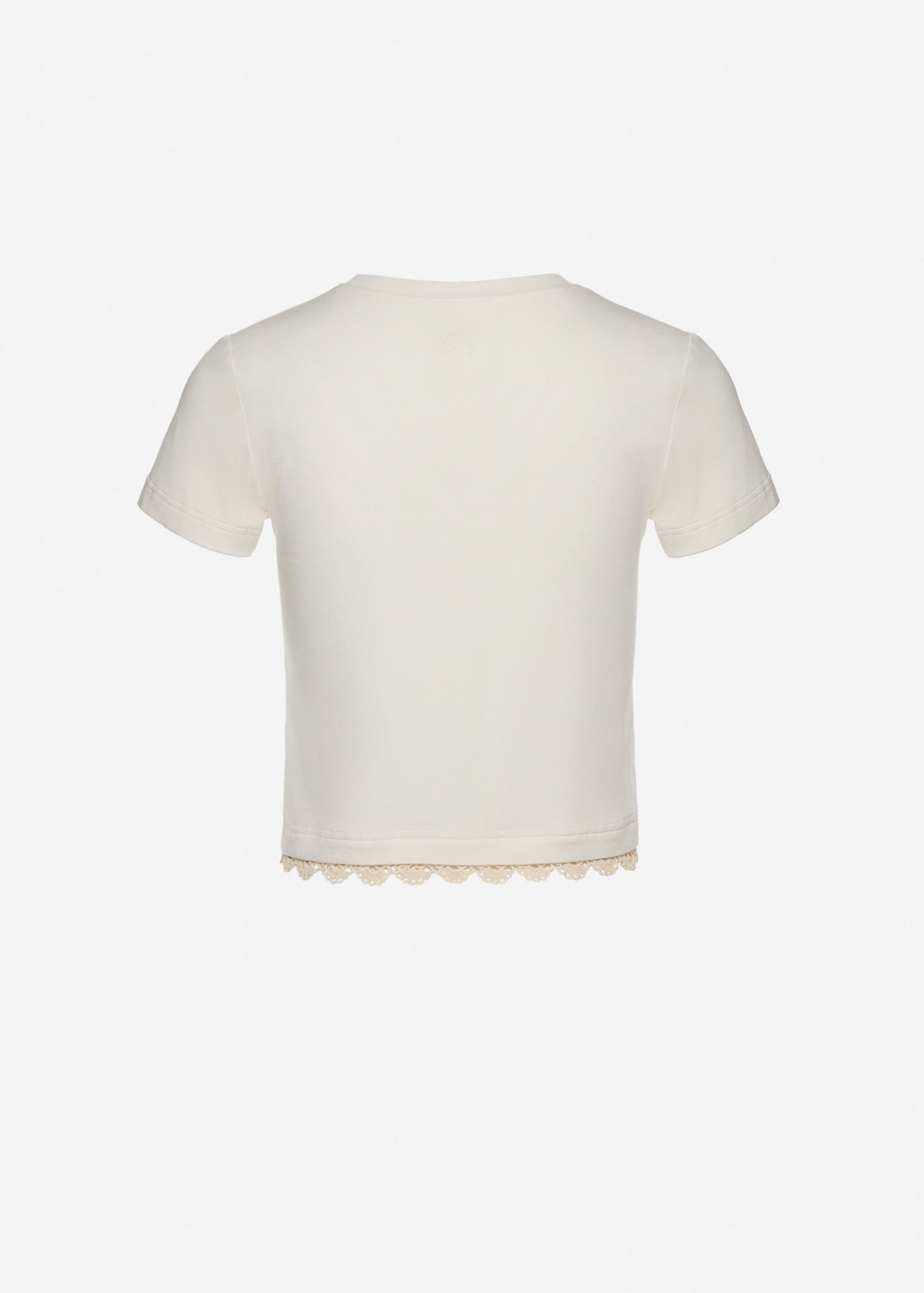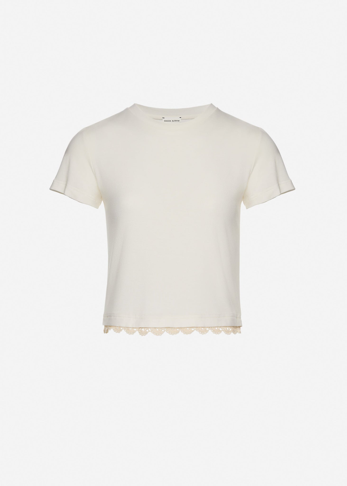 This classic tshirt features Magda Butrym's signature handmade lace crochet detailing at the hem.