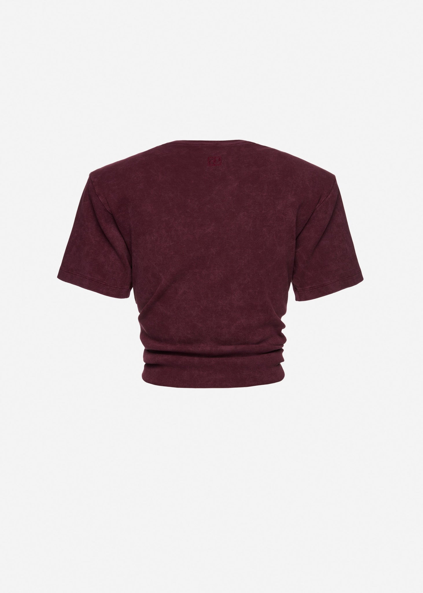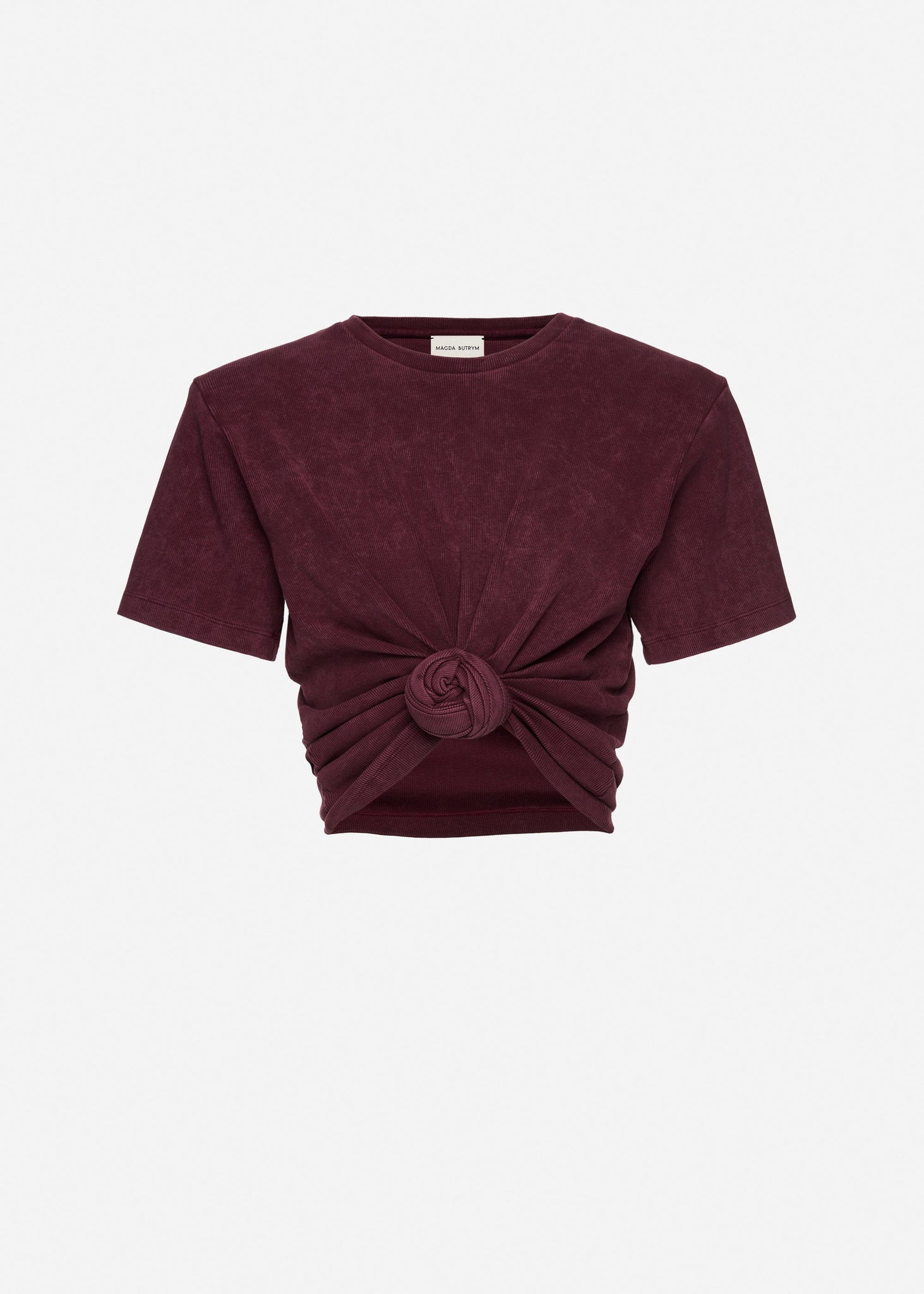 Magda's classic ribbed t-shirt with a knotted detail at the front and detachable shoulder pads.