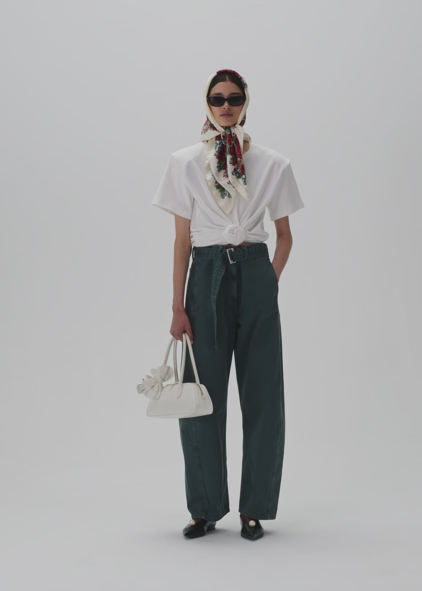 Magda's classic ribbed t-shirt features a knotted detail at the front and detachable shoulder pads.